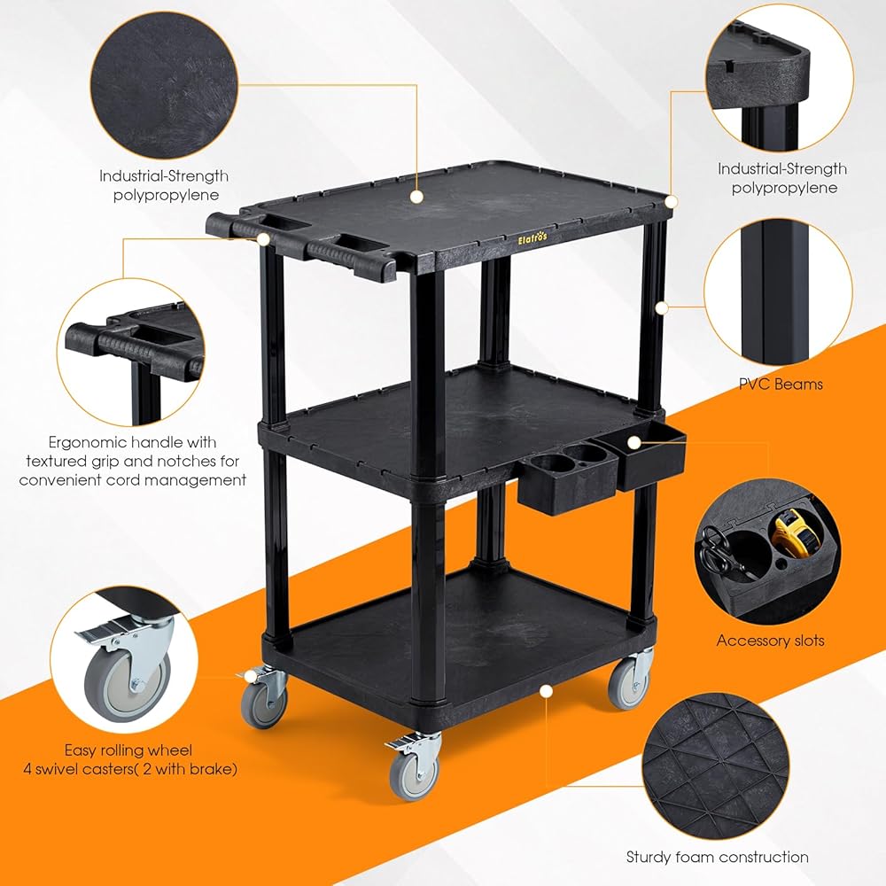 🔆متعددة الاستخدامات لتطبيقات واسعة: عربة الأدوات هذه مثالية لمجموعة متنوعة من الإعدادات، من المكاتب وورش العمل إلى المرآب والمستودعات. إن تصميمها القوي وسعة التحميل الكبيرة يجعلها مثالية لنقل الأدوات واللوازم والمعدات في البيئات التجارية والصناعية والمنزلية. سواء للاستخدام الاحترافي أو التنظيم اليومي، فهذه العربة هي حل عملي يتكيف مع احتياجاتك.