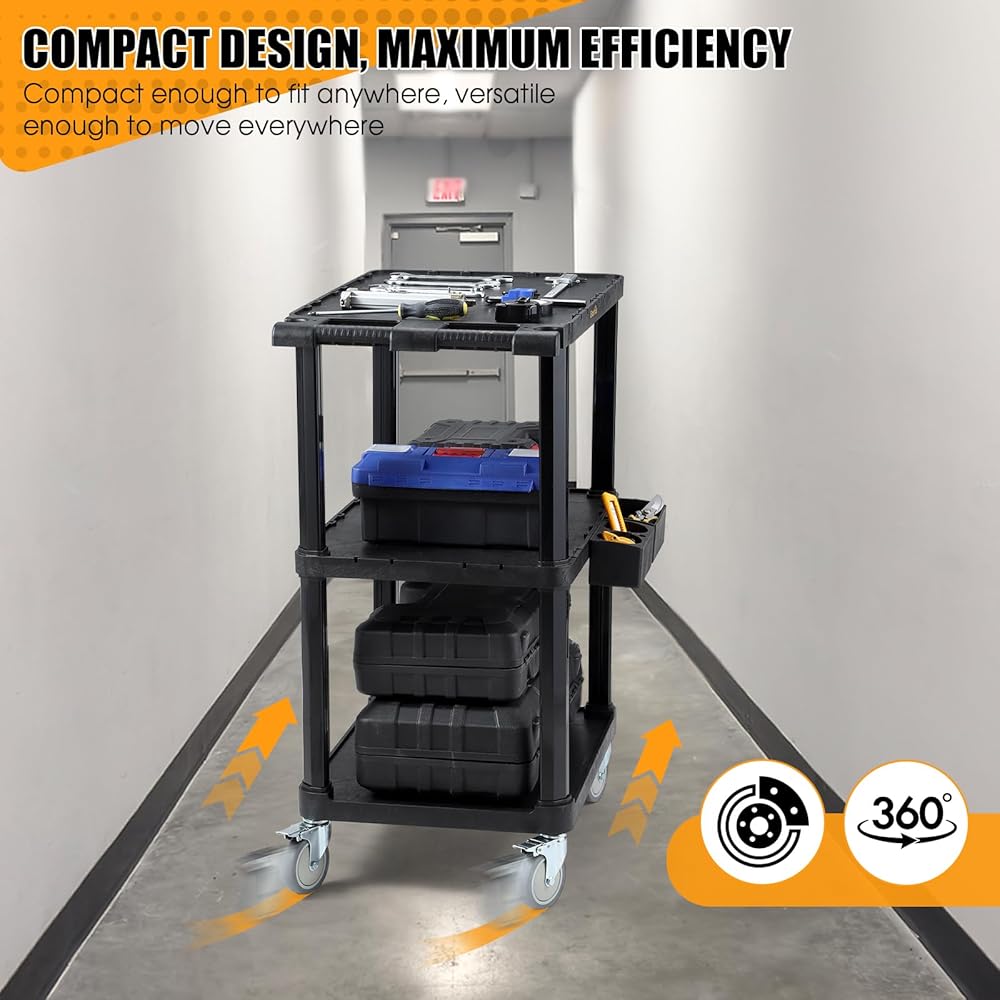 🔆تصميم محسّن ثلاثي الطبقات بسعة تحميل عالية: تم تصميم عربة الأدوات هذه بمسافات عملية، وتتميز بخلوص 14.5 بوصة من الرف السفلي إلى الرف الأوسط وخلوص 14 بوصة من الرف الأوسط إلى الأعلى، مما يسمح بسهولة تخزين العناصر الأكبر حجمًا. يدعم كل رف ما يصل إلى 110 رطل، مع سعة تحميل إجمالية تصل إلى 330 رطلاً، مما يوفر دعمًا موثوقًا للأدوات أو المعدات أو اللوازم الثقيلة. ويضمن هذا التصميم المدروس القوة والمساحة الواسعة، مما يجعله خيارًا يمكن الاعتماد عليه للبيئات المهنية كثيرة المتطلبات.