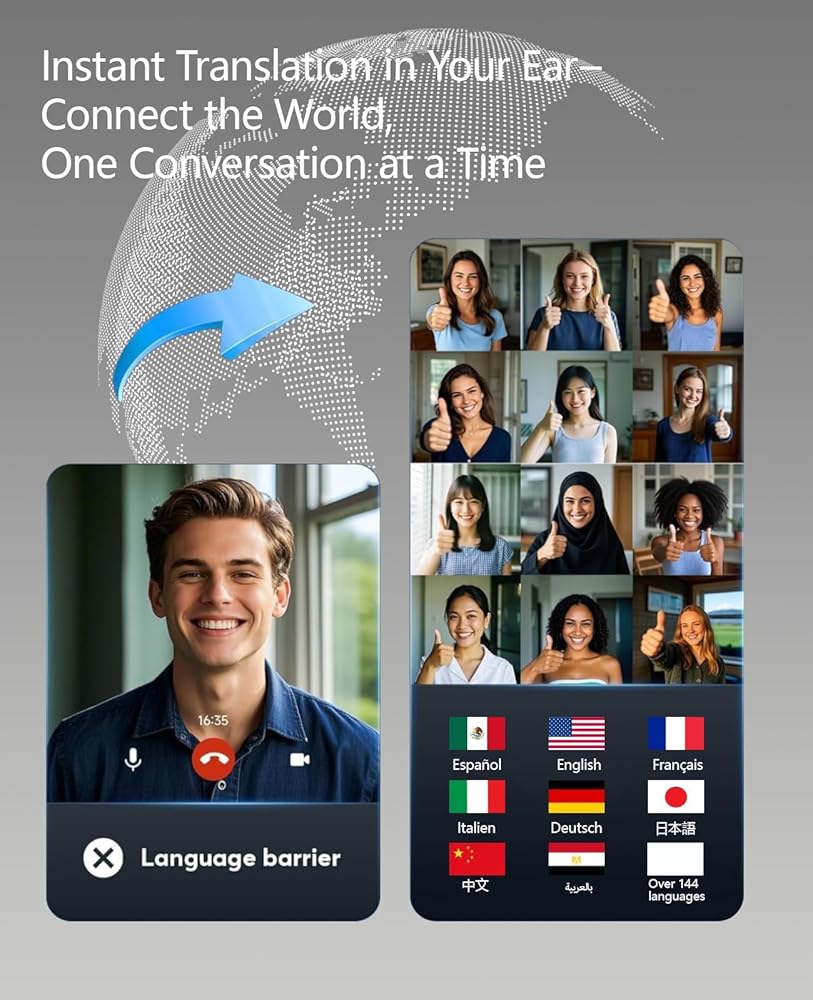 استخدمها كـ: سماعات أذن مترجمة بتقنية الذكاء الاصطناعي، سماعات رأس لاسلكية تعمل بتقنية البلوتوث، سماعة اتصالات الأعمال، جهاز ترجمة للسفر
