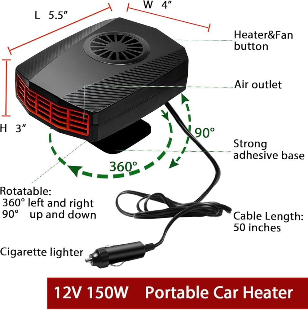 تسخين سريع 150 وات وإزالة الصقيع الفوري: يعمل سخان السيارة المحمول هذا بقدرة 12 فولت 150 وات على إذابة الصقيع والضباب والجليد عن الزجاج الأمامي في ثوانٍ! يتم تسخينه بسرعة للحفاظ على نظافة النوافذ ودفء المقصورة - وهي طريقة أكثر أمانًا للقيادة في فصل الشتاء.