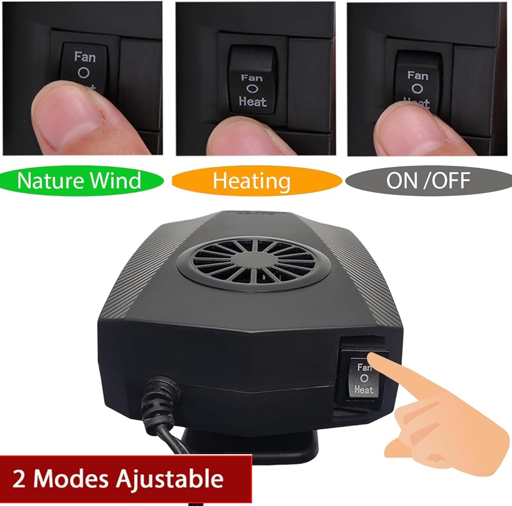السخان والمروحة: يعملان في كل موسم! يقوم بتسخين الجزء الداخلي لسيارتك في ثوانٍ عندما يكون الجو باردًا، ويبرده بسرعة عندما يكون ساخنًا، بل وينعش الهواء بالداخل. ما عليك سوى توصيله وتشغيله والتبديل بين وضع السخان أو المروحة.