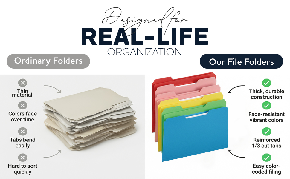 📁 15 مجلد ملفات مميز - يتضمن 15 مجلد ملفات بحجم حرف في كل حزمة مع علامات تبويب 1/3 قطع لسهولة وضع العلامات والتنظيم.
