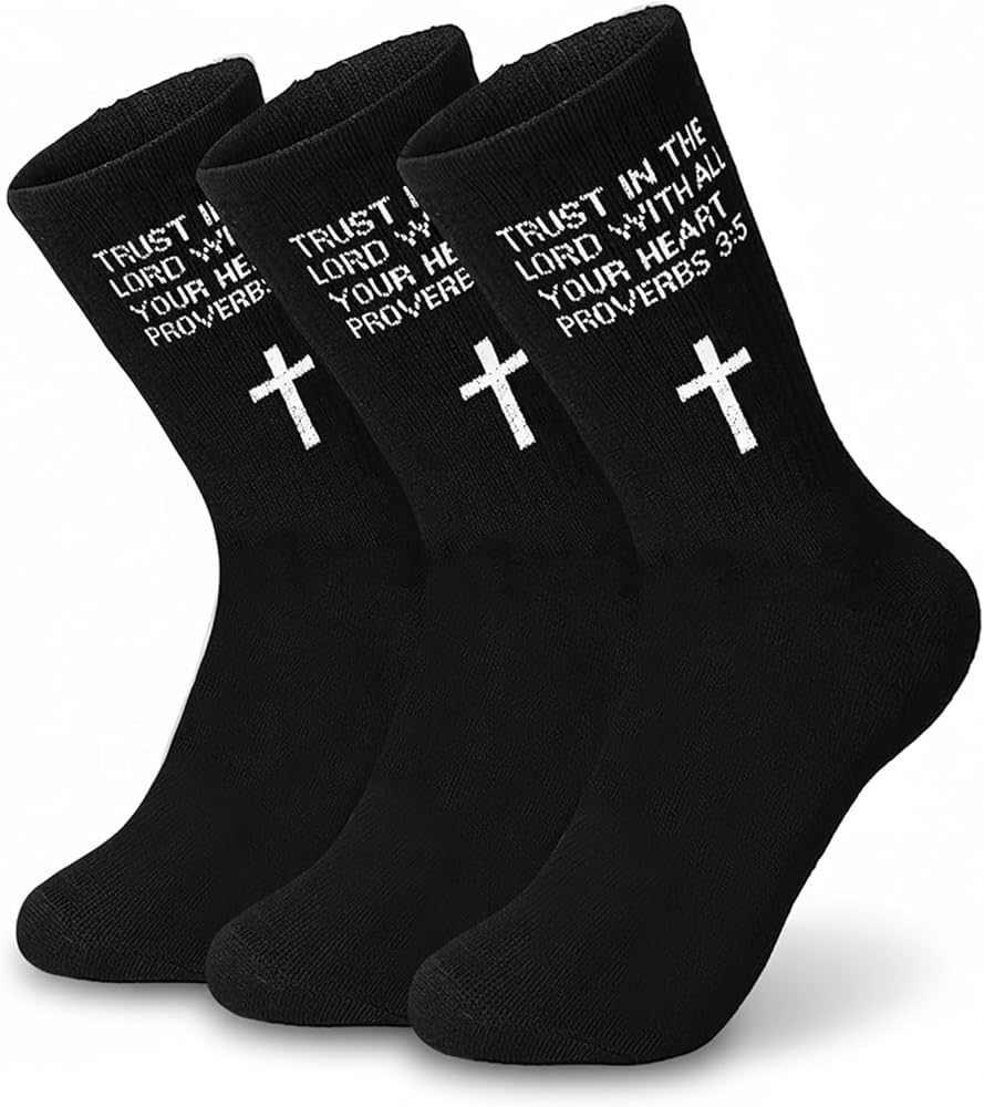 Prayer Socks These prayer socks feature a striking print of various Bible verses. Wear them as if carrying a piece of divine wisdom with you. This profound scripture will be a powerful daily reminder of your faith and guide you on your spiritual journey.