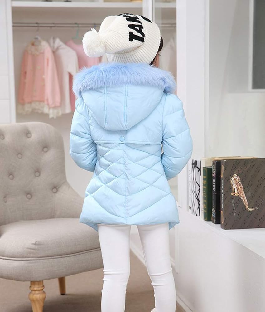 معاطف شتوية للفتيات جاكيت منتفخ دافئ بغطاء للرأس من الفرو معطف باركا للفتيات