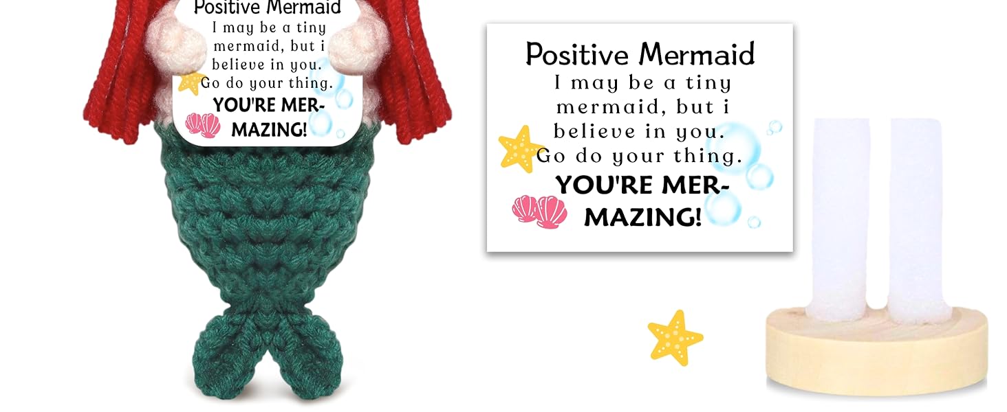 مشجعة حورية البحر الصغيرة الخاصة بك: حورية البحر المصنوعة يدويًا من مافونو تحمل بطاقة لامعة تعلن: "حورية البحر الإيجابية. قد أكون حورية البحر الصغيرة، لكنني أؤمن بك. اذهب وافعل ما تريد. أنت ميرمازينج!" - موجة من السحر المائي والذكاء المنعش المصمم لإشعال الثقة والابتسامات على الفور! هدايا رائعة لنفسك أو لابنتك، أو أختك، أو صديقتك، أو أعز أصدقائك، أو عمتك، أو زوجة الأب، أو الأم، أو زملاء الدراسة