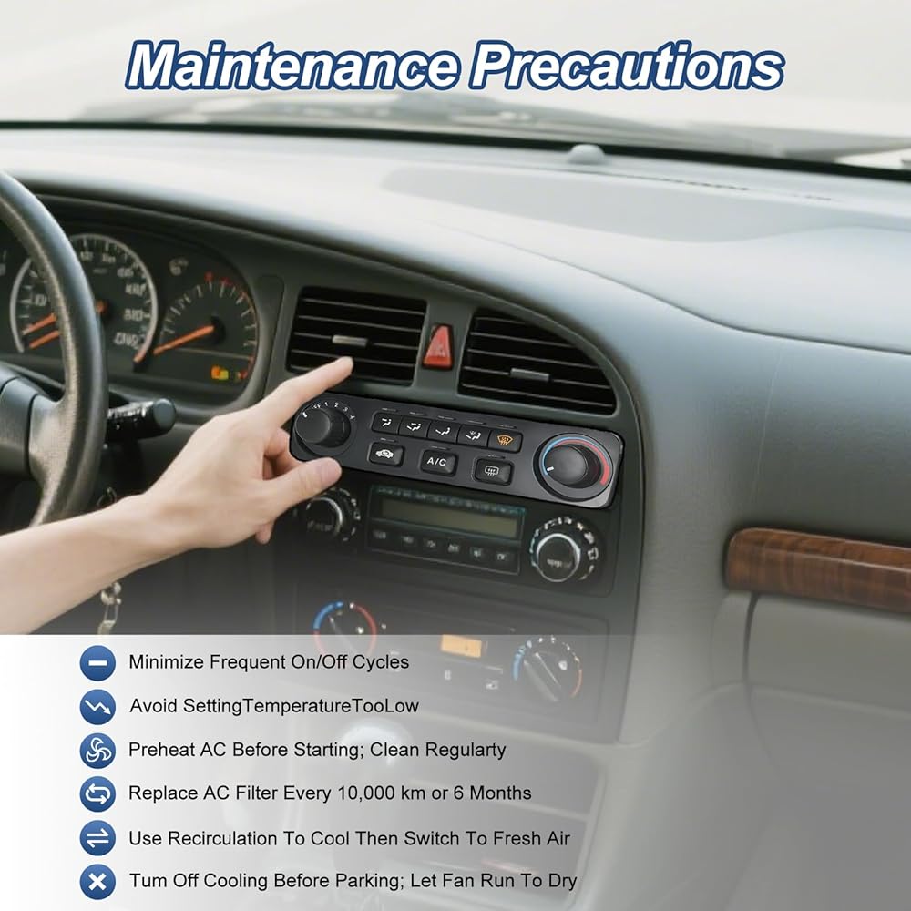• 【أداء متميز】تدمج لوحة التحكم في التدفئة والتهوية وتكييف الهواء ثلاث وظائف رئيسية: التبريد والتدفئة وإزالة الجليد. من خلال التحكم الدقيق في درجة الحرارة والتعديل الذكي لتدفق الهواء (سرعة/اتجاه الرياح)، فإنه يضمن بقاء النوافذ واضحة في كل من البرد الشديد والحرارة.