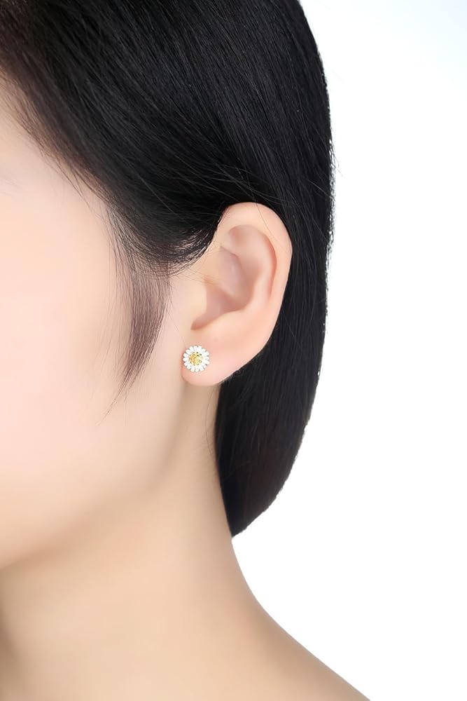 Each piece is made of real 925 sterling silver, safe for sensitive skin and nickel-free. The daisy petals feature a delicate white finish, paired with a lovely gold-tone center for a bright, vivid look inspired by natural daisies.