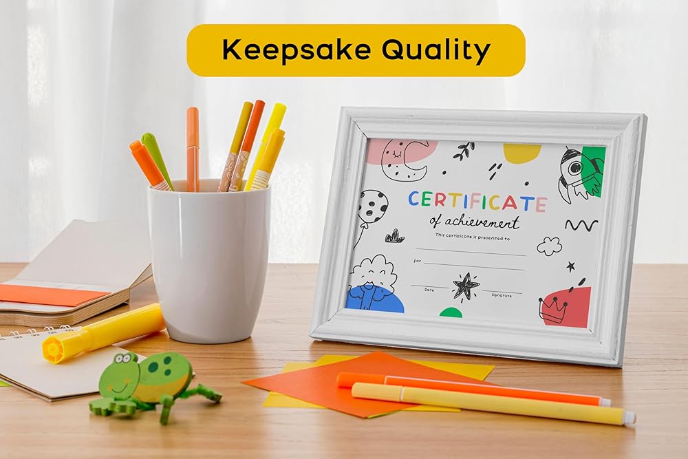 الحجم المثالي: يبلغ مقاس كل شهادة 8 × 11 بوصة، مما يجعل من السهل الكتابة عليها أو طباعتها أو تأطيرها كتذكار للأطفال والآباء.