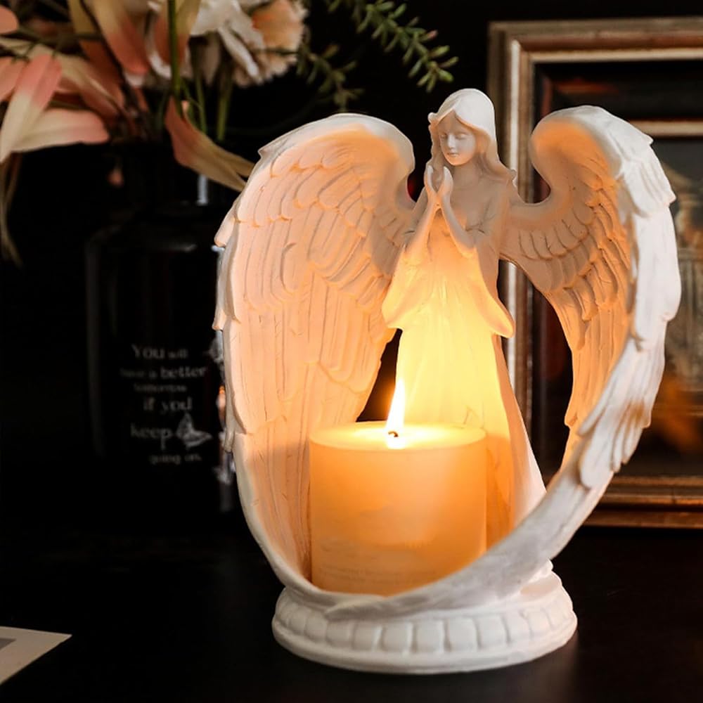 إلهام وشفاء الناس وجلب راحة كبيرة - أجنحة الملاك مع حامل شموع ضوء الشاي بطريقة هادئة للشفاء والراحة والحماية وإلهام الناس. يتواصل النحت من خلال الإيماءة لتمثيل المشاعر أو الإشارة إلى الذاكرة. جلب الراحة الفريدة والغريبة والملهمة والجسدية