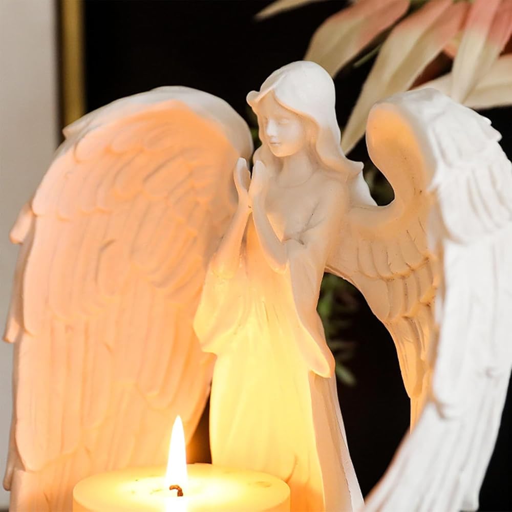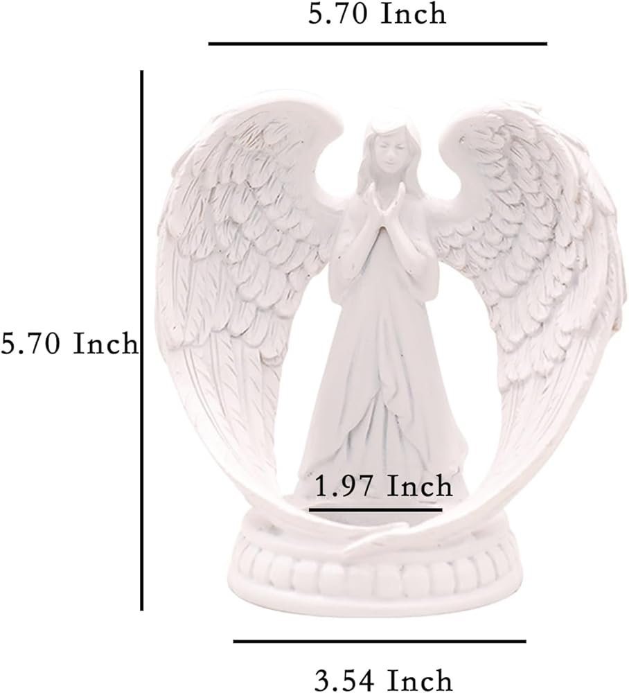 حامل شموع نذرية - حامل شموع أجنحة الملاك هذا مصنوع من الراتنج عالي الجودة ومطلي يدويًا بلمسة بيضاء عتيقة. يُعد حامل النذر هذا بمثابة هدية دينية مثالية، أو هدية معمودية أو هدية تعميد حيث تضيف شخصية الملاك لمسة مقدسة إليها مما يجعلها هدية مثالية للمناسبات الدينية.