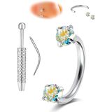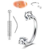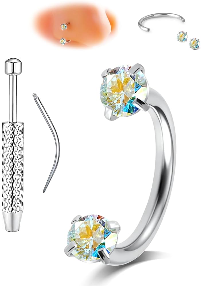 Details of Moissanite Nose Rings: Package include 1pcs G23 titanium horse shoe nose ring with double 3MM AB color moissanite stones, GRA certification, 1pcs piercing taper insertion tool piercing threader tool. Nose ring hoops bar thickness: 20 Guage (0.8mm), inner diameters 8mm(5/16‘'), which is the perfect size for most people and suitable for everyday wear