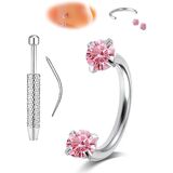 حلقات أنف على شكل حدوة حصان مويسانيتي للنساء 20 جرام G23 حلقات أنف من التيتانيوم خيط داخلي حاجز الأنف ثقب مجوهرات لا تسبب الحساسية مسامير لولبية مزدوجة مصنوعة من الماس معتمد 3 مم D VVS1 مع أداة وردي/أبيض/AB اللون