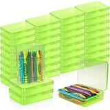 علبة أقلام تلوين بلاستيكية 30 قطعة مع غطاء مفصلي، حاويات تخزين شفافة، علبة ألوان شمعية لمستلزمات الفصول المدرسية (شفاف)