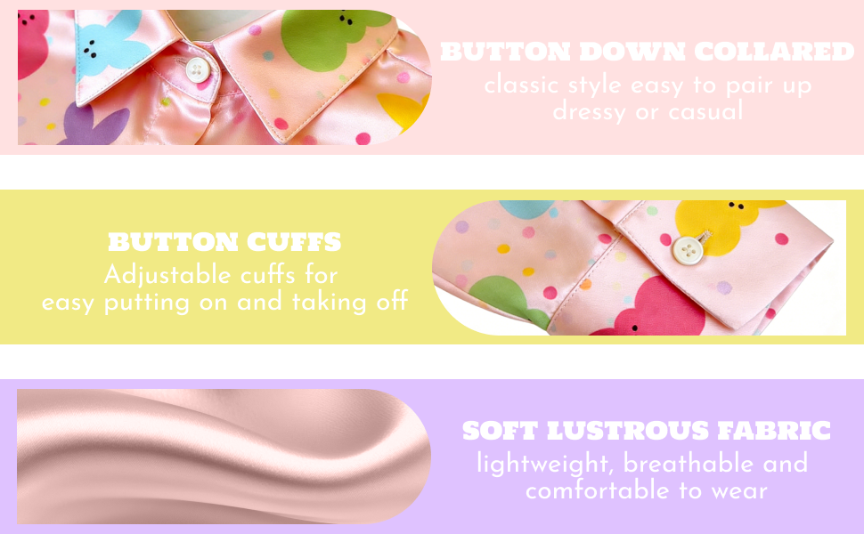 المواد: يمكن استخدام قميص عيد الفصح هذا كملابس مناسبة لعيد الفصح العائلي، كما أنه هدية ممتازة لصديقتك والزوجة والمعلم والأم. نسيج الساتان اللامع الفريد يجعل الملابس أكثر أناقة ومتانة. ناعم، وخفيف الوزن، ومسامي ومريح، وصديق للبشرة للارتداء المناسب.