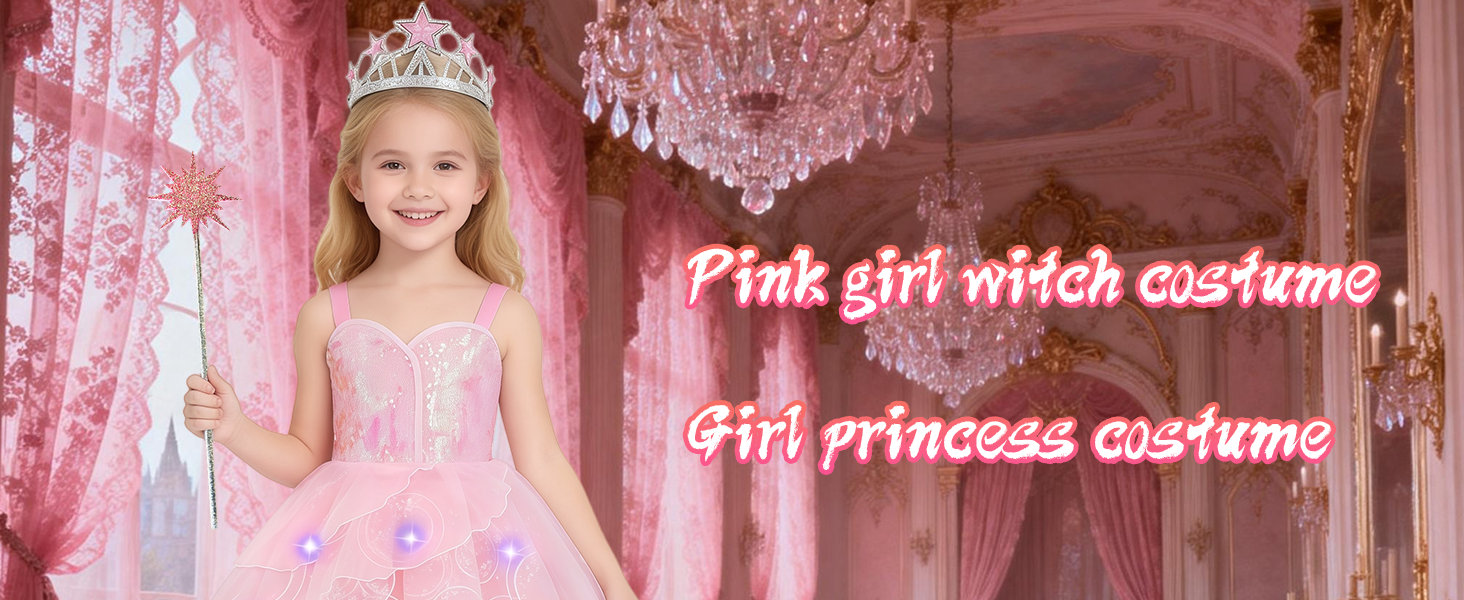 مجموعة أزياء الأميرة غليندا الكاملة المكونة من 8 قطع: يتضمن زي الساحرة السحرية هذا فستانًا واحدًا، وتاج تاج الأميرة، وعصا نجمة واحدة، وزوجًا واحدًا من قفازات الساتان الطويلة، وقلادة واحدة، وسوارًا واحدًا، وخاتمًا واحدًا، وزوجًا واحدًا من الأقراط المشبكية