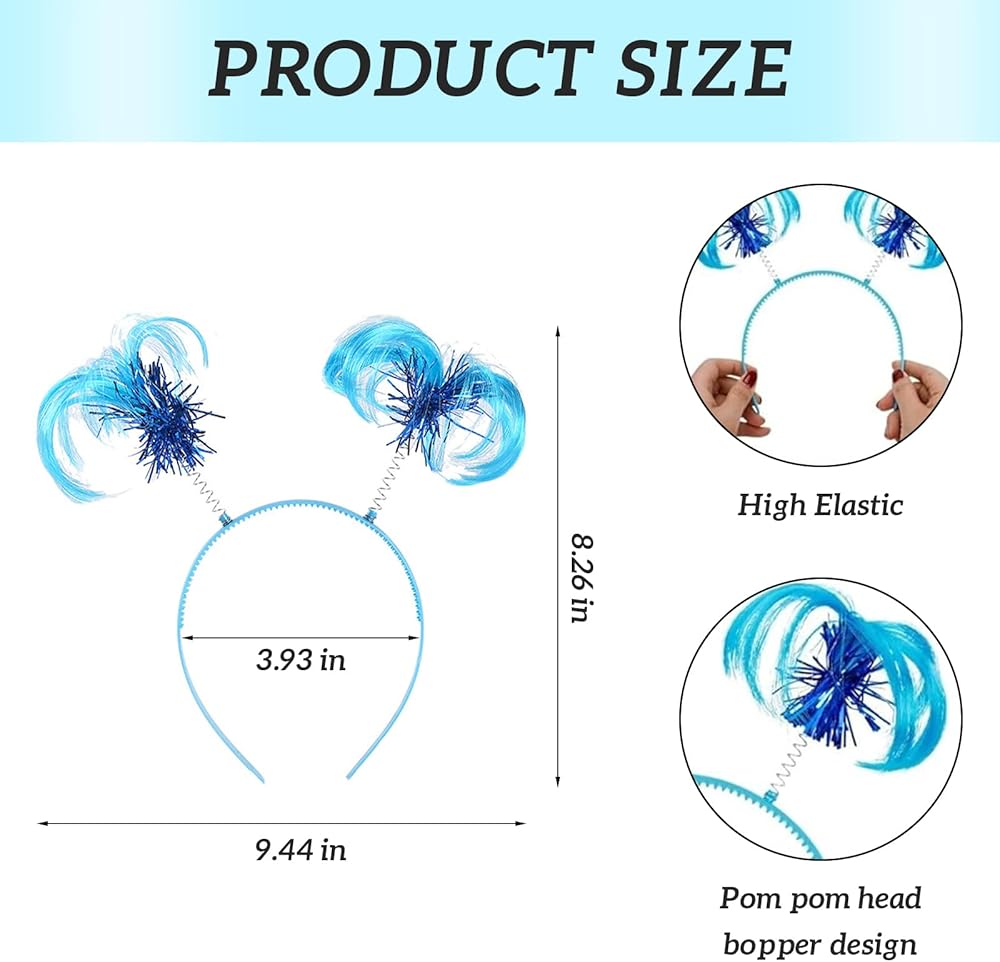• Blue Ponytail Headband Party Accessory:the ponytail head bopper is made of quality plastic, tinsel foil and simulation feather, stretchy and comfortable to wear, not easy to break or slip off your hair;8.6 x 4 inches equipped with good elasticity