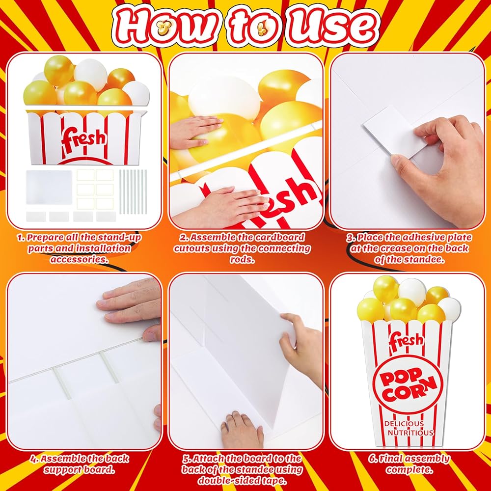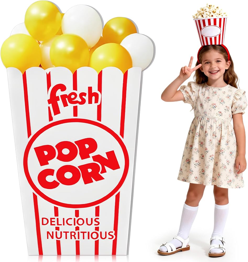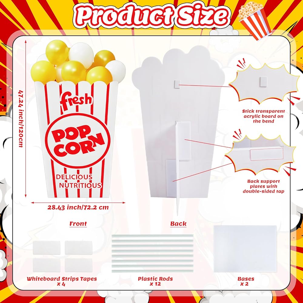Pairs easily with marquee letters, film reels, star banners, or ticket-booth props to create cohesive visual storytelling across event spaces. The striped artwork complements classic theater décor inspired by striped red & white popcorn box cardboard