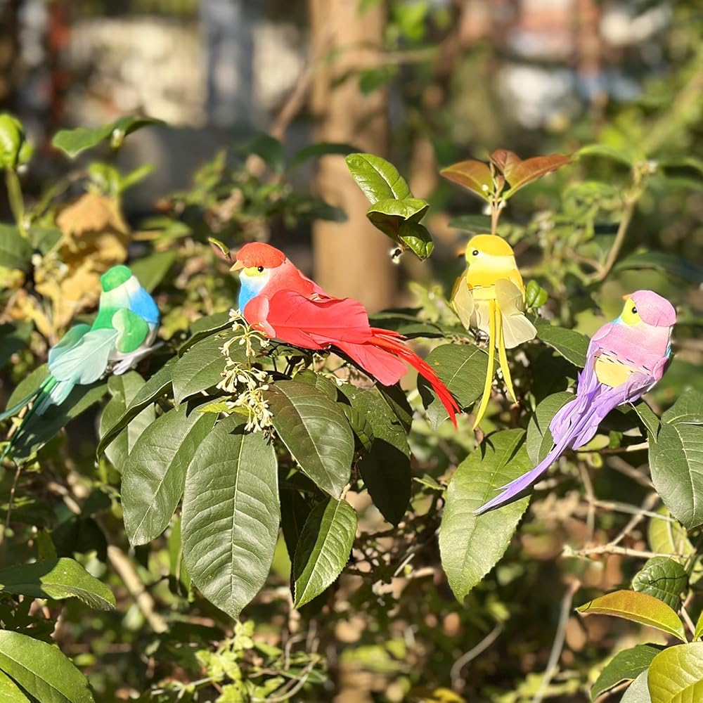 🦜【طيور الربيع المزخرفة، طيور واقعية مع الريش】 مصنوعة بتفاصيل دقيقة، تبدو هذه الطيور ذات الريش وكأنها طيور حقيقية تطفو في الطبيعة بنسب وألوان وملمس واقعي.