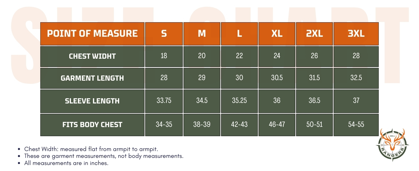 TRUSTED BY SERIOUS HUNTERSThousands of hunters nationwide rely on Bell Rangers gear for their most critical pursuits. Whether for deer, turkey, elk, or duck hunting, our long sleeve camouflage shirts combine concealment, comfort, and cutting-edge fabric technology to elevate your performance in the wild. Realtree EDGE: Perfect for woodland and transition zones. Realtree MAX7: Designed for waterfowl concealment in marshes and open water. Realtree EXCAPE: Effective in open western terrain from 400 to 20 yards. Realtree APX: S.E.T. technology creates depth and illusion for ultra-realistic concealment. Mossy Oak Country Roots: Traditional heritage patterns for classic wooded areas. Mossy Oak Mountain Country: Engineered for rocky, high-altitude environments.