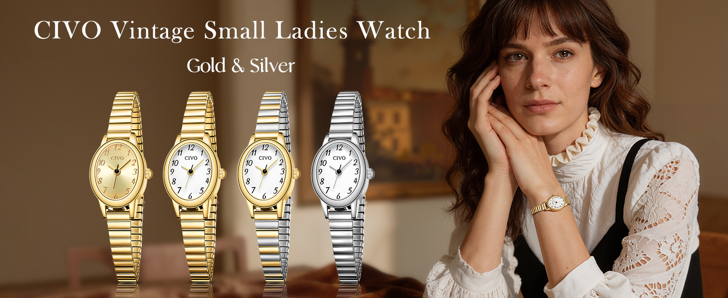 ساعة ذهبية صغيرة رائعة: ساعة ذهبية صغيرة مستوحاة من الطراز القديم مع أرقام عربية واضحة لسهولة القراءة؛ تصميمه الصغير والأنيق يكمل الملابس الكاجوال والمهنية، مما يساعد النساء الأنيقات على التعبير عن الثقة والنعمة أثناء التنقلات اليومية والتجمعات الاجتماعية واجتماعات العمل.