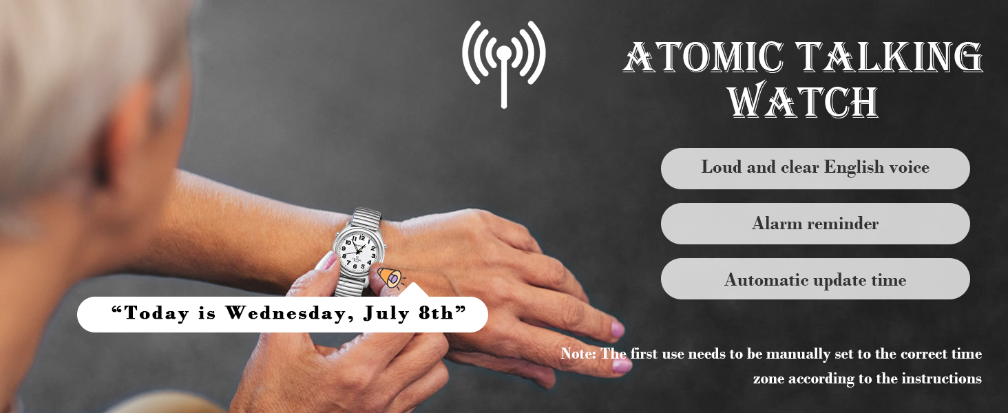 الساعة الذرية - هذه ساعة ذرية ناطقة صديقة جدًا لكبار السن والمكفوفين. ستقوم الساعات النسائية التي يتم التحكم فيها عن طريق الراديو بضبط الوقت تلقائيًا كل ليلة عند الساعة 3 صباحًا (ملاحظة: نظرًا لوجود أربع مناطق زمنية في الولايات المتحدة، فأنت بحاجة إلى ضبط المنطقة الزمنية بشكل صحيح في المرة الأولى)