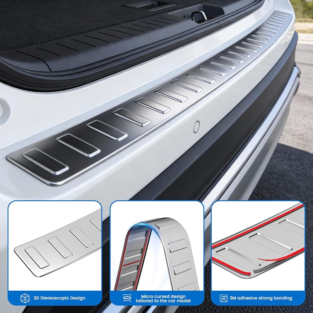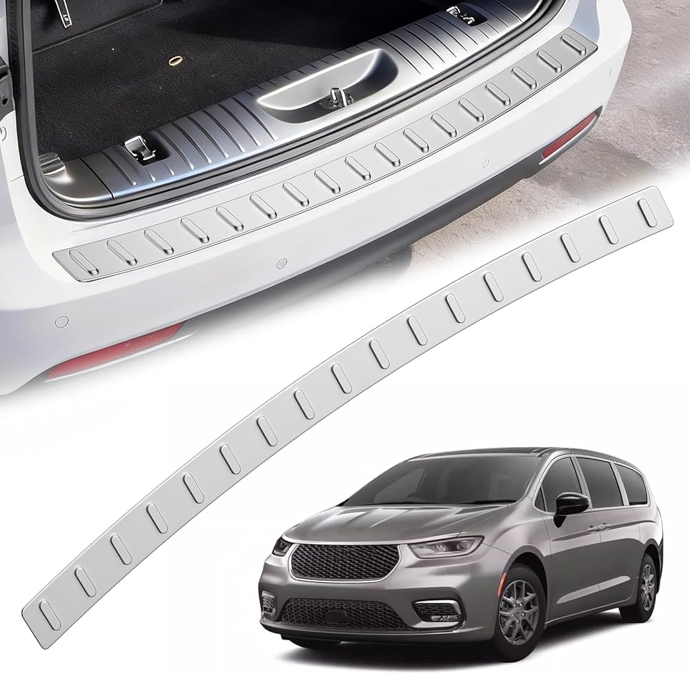 واقي ممتص الصدمات الخلفي من الفولاذ المقاوم للصدأ يناسب 2017-2026 كرايسلر باسيفيكا، ملحقات غطاء حماية عتبة الباب الخارجي، فضي قطعة واحدة، 2018 2019 2020 2021 2022 2023 2024 2025