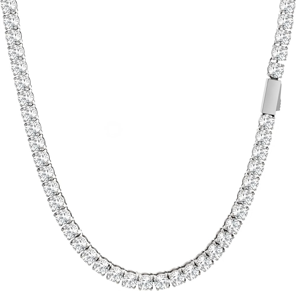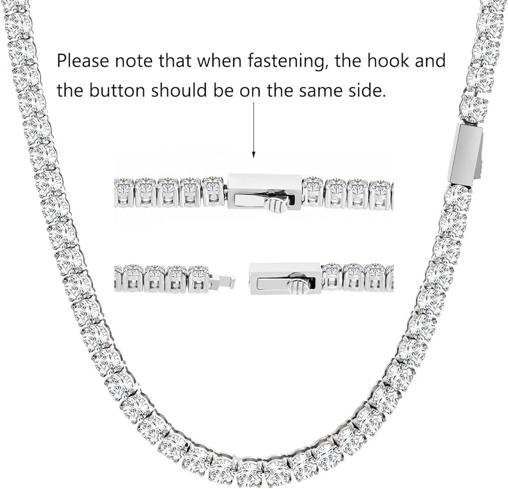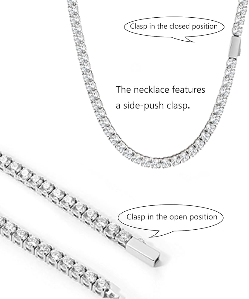 معايير جودة المنتج: جميع قلادات سلسلة التنس الخاصة بنا تلبي معايير المجوهرات رقم 65 الخاصة بالاتحاد الأوروبي وكاليفورنيا. خالي من الرصاص والنيكل والكادميوم: لا يسبب الحساسية وصديق للبيئة، وآمن على بشرتك ولا يسبب ضررًا للصحة.