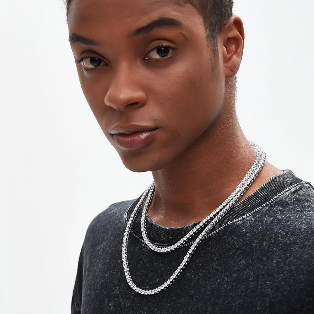 الطراز والمقاس: قلادات سلسلة تنس ألماس الهيب هوب الكلاسيكية "Iced out" 5A CZ، مصنوعة بحرفية رائعة. المقاسات: العرض 3 مم/4 مم، أطوال القلادة متوفرة بمقاسات 16 بوصة/18 بوصة/20 بوصة/22 بوصة مع مشابك جانبية سهلة الاستخدام لارتداء مريح.