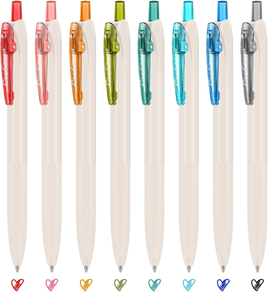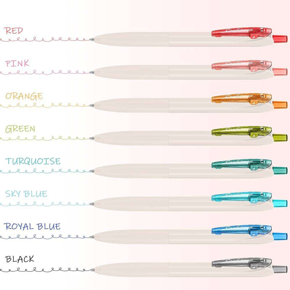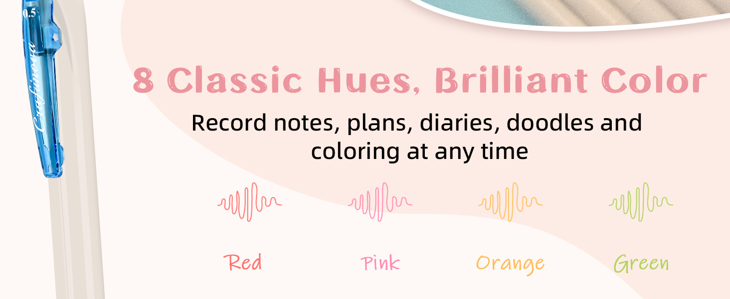 【ألوان متنوعة 8 حبر نابض بالحياة】 أقلام جل متعددة الألوان، الأقلام ذات النقاط الدقيقة مقاس 0.5 مم مع أطراف دقيقة تضمن كتابة واضحة ومرتبة، مما يجعلها مثالية للرسم والكتابة في المساحات الصغيرة.