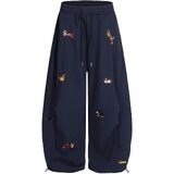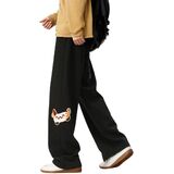Design: These wide-leg sweatpants feature an elastic smocked waist with an adjustable drawstring, animals cute cartoon embroidered dachshund
