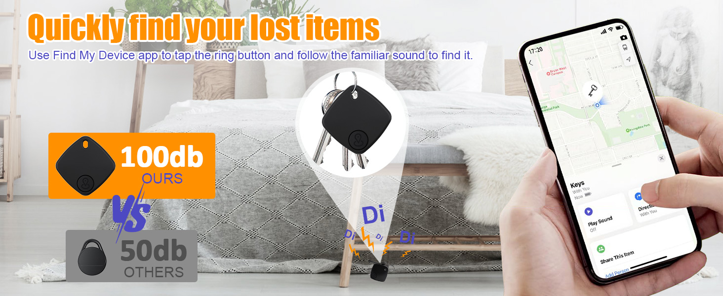【تعمل مع iOS Find My】تتوافق علامة التتبع الذكية الخاصة بنا تمامًا مع تطبيق Find My، مما يسمح لك بتتبع الأشياء الثمينة في الوقت الفعلي عبر جهاز iOS الخاص بك. تتبع عالمي عبر شبكة iOS التي تضم مليار جهاز، يمكنك استخدام تطبيق Find My للعثور على العناصر المفقودة عندما تكون علامة تعقب الأمتعة في النطاق، أو فقط اطلب المساعدة من Siri. يضمن أحدث جهاز تتبع الهواء عدم فقدان مقتنياتك الثمينة مرة أخرى. نعلقها على المفاتيح والمحافظ والأمتعة والدراجات. (iOS فقط)
