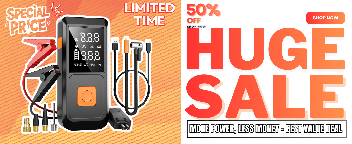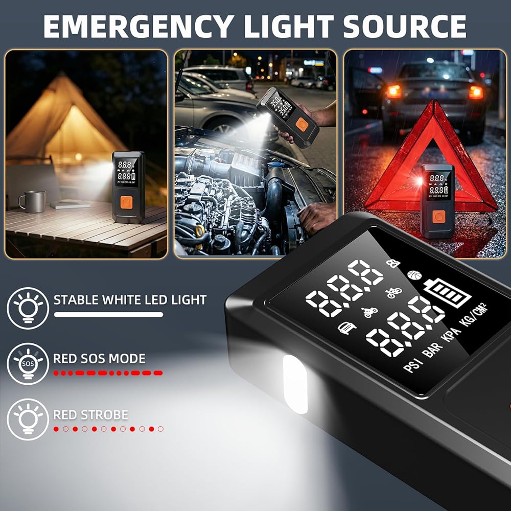 • [محطة طوارئ محمولة 8 في 1] أكثر من مجرد أداة تشغيل أساسية: تتضمن معزز البطارية، ومنفاخ إطارات 150 رطل لكل بوصة مربعة، ومقياس الضغط الرقمي، وبنك طاقة 20000 مللي أمبير في الساعة، ومصباح يدوي LED 400 لومن مع أوضاع SOS/ستروب. مدخل من النوع C لإعادة الشحن السريع، ومخرج USB-A لشحن الهواتف والأجهزة اللوحية أثناء التنقل
