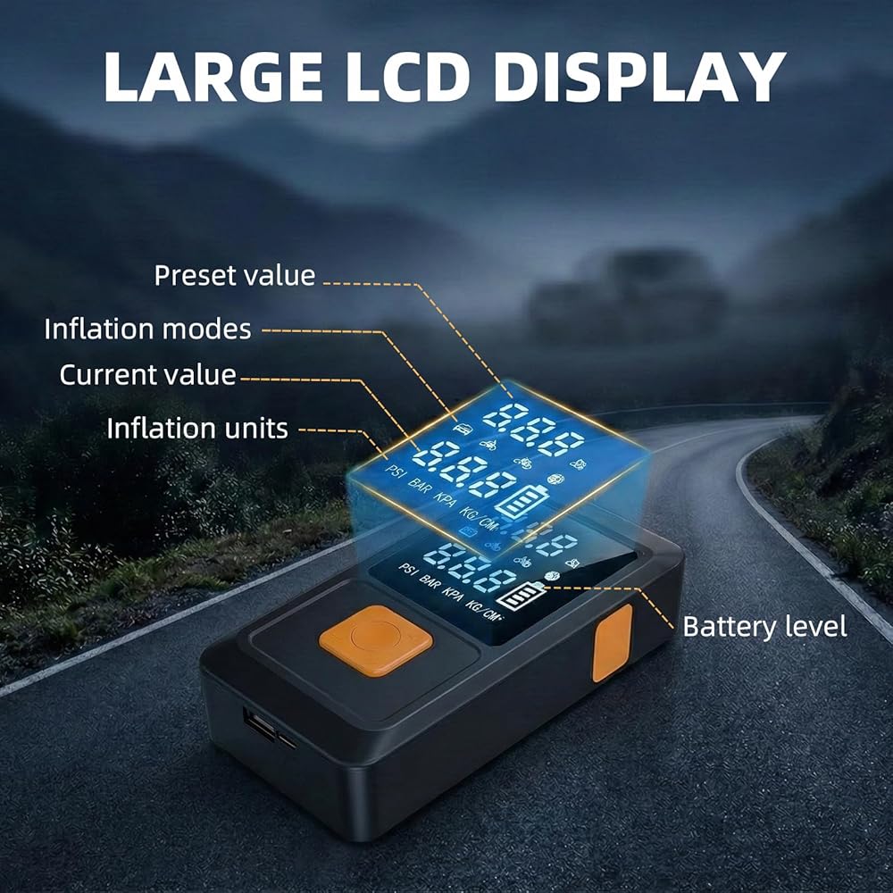 • [شاشة LCD قابلة للقراءة في ضوء الشمس] تظل الشاشة الكبيرة عالية التباين مرئية بوضوح في ضوء الشمس المباشر، وتظهر نسبة البطارية في الوقت الحقيقي، وقراءات ضغط الإطارات، وحالة الشحن، وتنبيهات الأخطاء. لا داعي للتخمين: اعرف دائمًا متى يكون جهازك جاهزًا لحالات الطوارئ