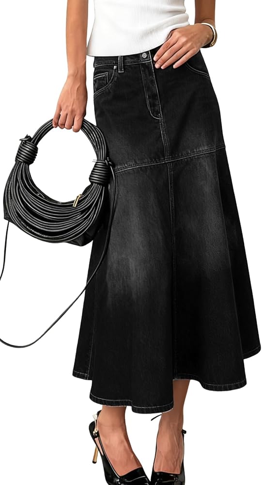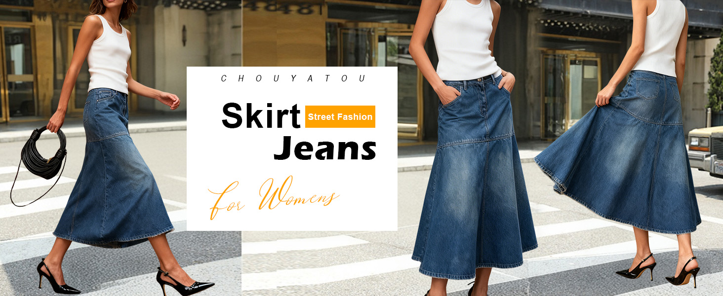 تنورة طويلة من الدنيم بتصميم أساسي من 5 جيوب، مصنوعة من قماش باهت ومادة من مزيج القطن الناعم، 5 ألوان: أسود/رمادي/أزرق فاتح/أزرق داكن/أزرق متاح؛ تنورة حورية البحر الأنيقة تنسدل بأناقة فوق الوركين، وتوفر صورة ظلية جذابة تحتفل بالسحر الأنثوي دون المساس بالراحة.