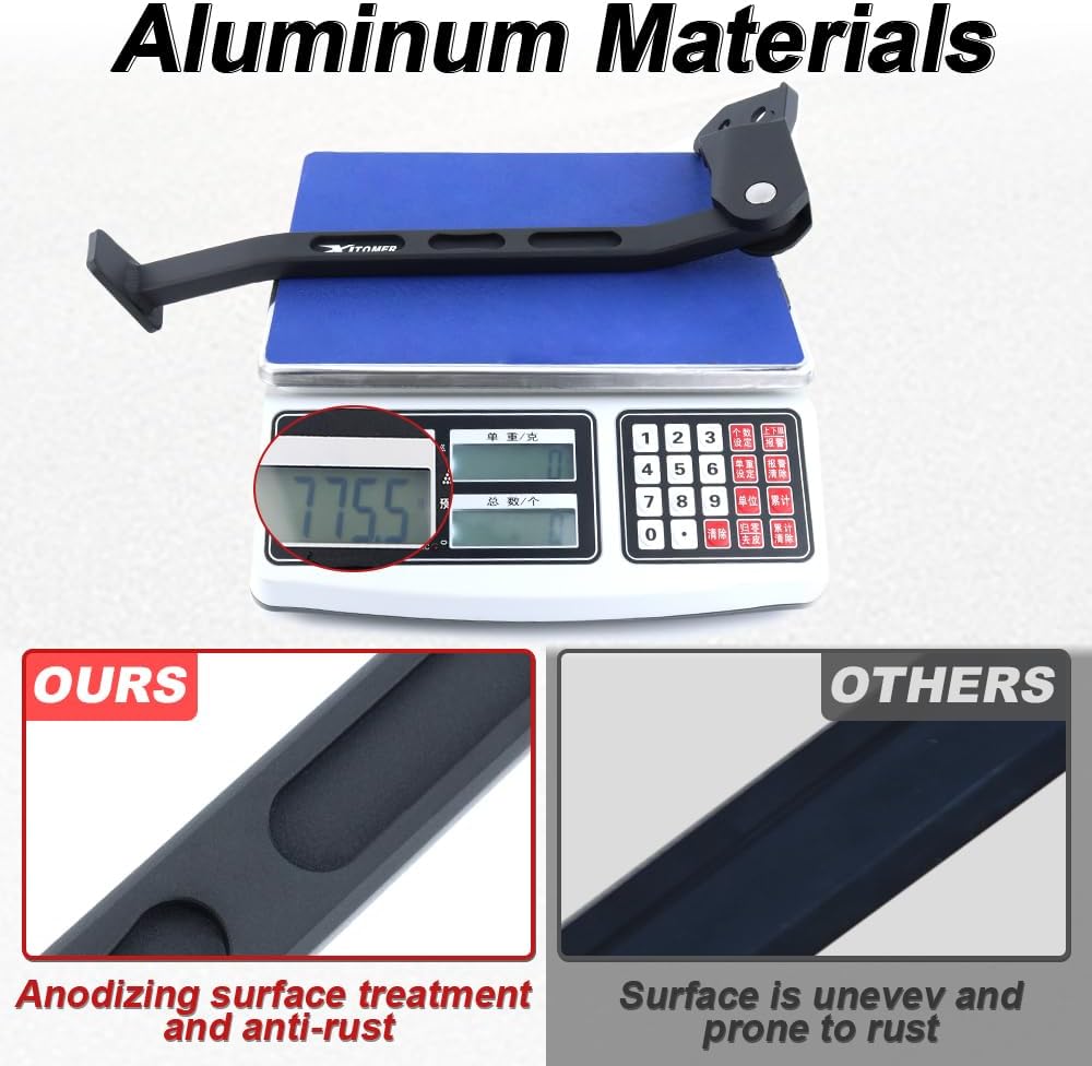 We use 6061 aluminum for a reason: it's strong enough to handle the weight of your bike yet incredibly light, so it won't weigh you down on the track. The clever design ensures a secure fit that won't vibrate loose, and the large footpad gives you peace of mind when parking on loose surfaces