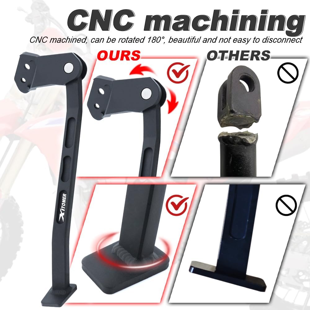 ESSENTIAL CONVENIENCE FOR OFF-ROAD BIKES: Compatible with CRF450R 2019-2024 /CRF250R 2019-2024 /CRF250RX 2024 /CRF450RWE 2024. This auxiliary side stand provides the crucial convenience for quick stops during trail rides, practice sessions, or at the track, eliminating the need to lean your bike against objects