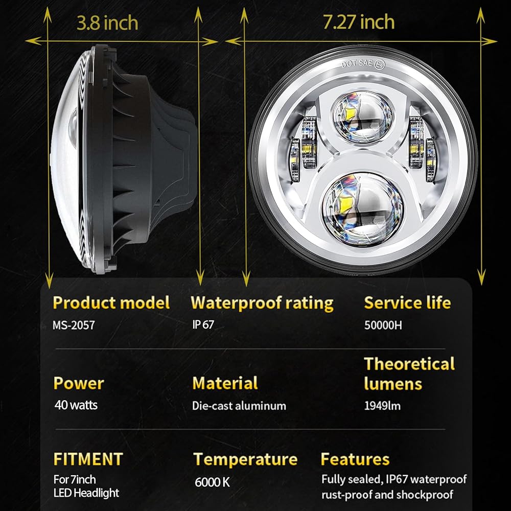 مصنوعة من رقائق LED أصلية عالية الأداء بنسبة 100%. معتمدة من DOT & SAE، تصنيف العلامة الإلكترونية، مشرقة للغاية مقارنة بمصباح مصنع OEM. دائرة فريدة مضادة للشيخوخة وتصميم أكثر كفاءة لتبديد الحرارة، مما يضمن عدم تخفيف الإضاءة، مما يجعلها مشرقة مثل العلامة التجارية الجديدة بعد سنوات