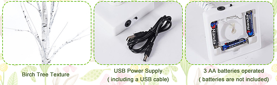 USB أو تعمل بالبطارية: تحتوي شجرة بيض عيد الفصح هذه على وضعين للطاقة لتختار من بينهما، أحدهما يعمل بـ 3 بطاريات AA (البطاريات غير متضمنة) والآخر مدعوم بكابل USB (يتضمن كابل USB). يتيح لك خيار مصدر الطاقة المزدوج الاختيار بين USB أو طاقة البطارية، مما يجعله مناسبًا للاستخدام في أي مكان.