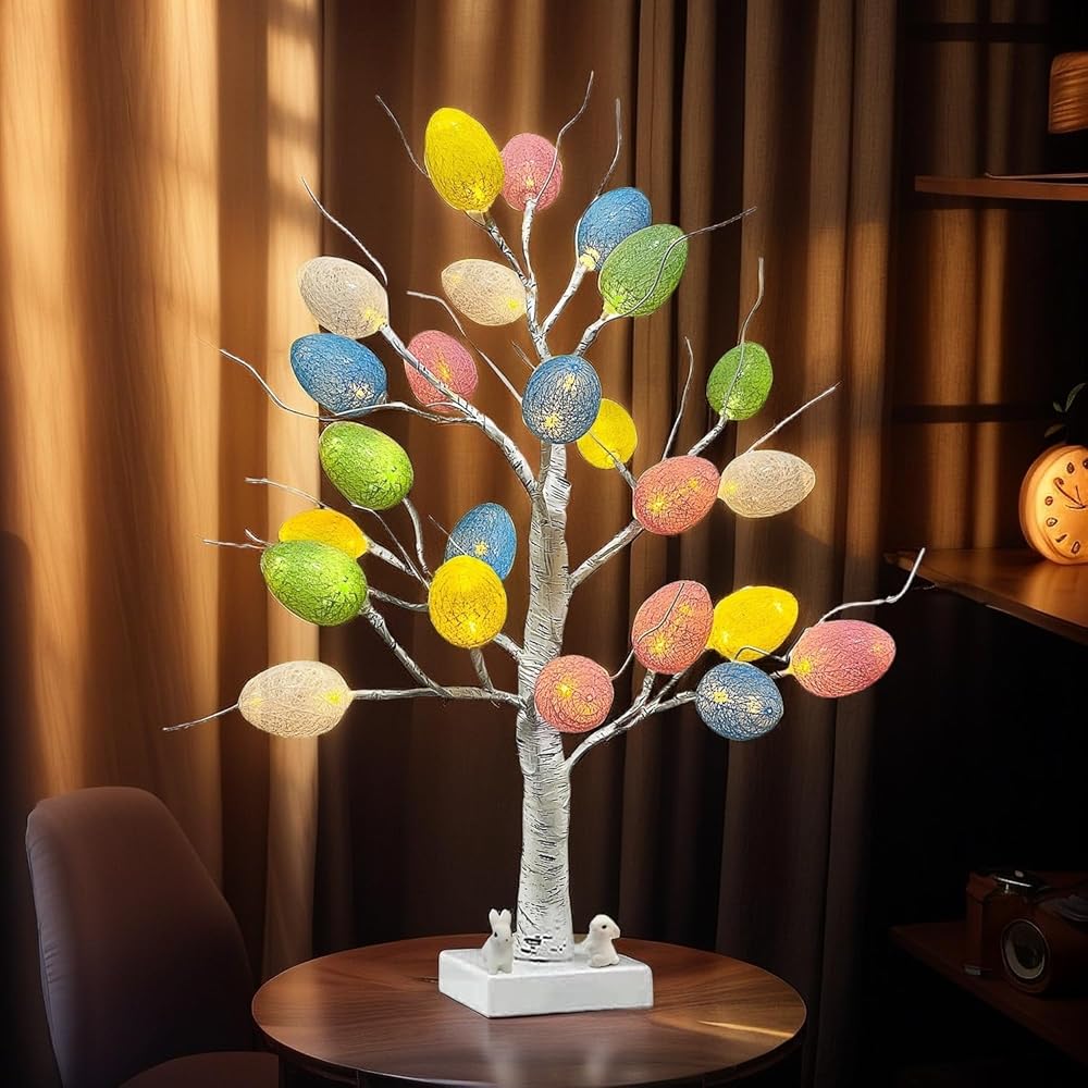زينة عيد الفصح، شجرة بيض عيد الفصح الاصطناعية المضاءة مسبقًا مع أضواء LED، شجرة البتولا المضيئة بطول 2 قدم، مصباح شجرة مضيء لديكور سطح الطاولة في عطلة الربيع