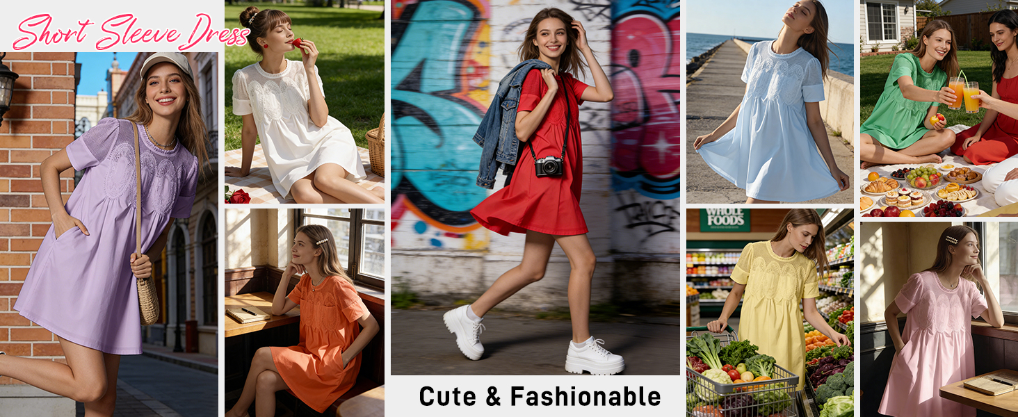 • التصميم: ارفع أناقتك مع ألواح دانتيل شبكية جيدة التهوية على الصدر والظهر لتعزيز تدفق الهواء، والظهر لجاذبية أنثوية، ورقبة دائرية، وأكمام قصيرة تضيف أناقة مرحة، كما توفر اللوحات شبه الشفافة لمسة من الجاذبية، فستان مكشكش لطيف للنساء