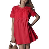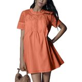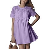 فساتين Shiyifa النسائية بيبي دول الدانتيل المرقعة الصيف قصيرة الأكمام كشكش فستان الشمس فضفاضة طاقم الرقبة ألف خط فساتين in Kuwait