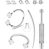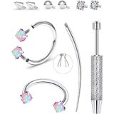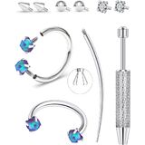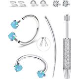 Package includes 2pcs blue opal rings, 4 CZ accessories, 1 curved pin & 1 tool (total 10pcs)