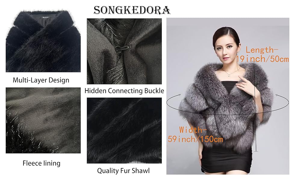 • 【نسيج فرو صناعي ناعم ممتاز】هذا الشال النسائي من الفرو الصناعي الشتوي مصنوع من فراء صناعي عالي الجودة مع لمعان حريري وملمس فائق النعومة، مما يوفر شعورًا فاخرًا ومريحًا. مصمم بهيكل دافئ من ثلاث طبقات، فهو لا يوفر عزلًا مريحًا فحسب، بل يرتقي أيضًا بأي زي - مثالي للحفلات أو تجمعات الكنيسة أو المناسبات الشتوية أو المناسبات الخاصة حيث تتألق الأناقة الخالدة.