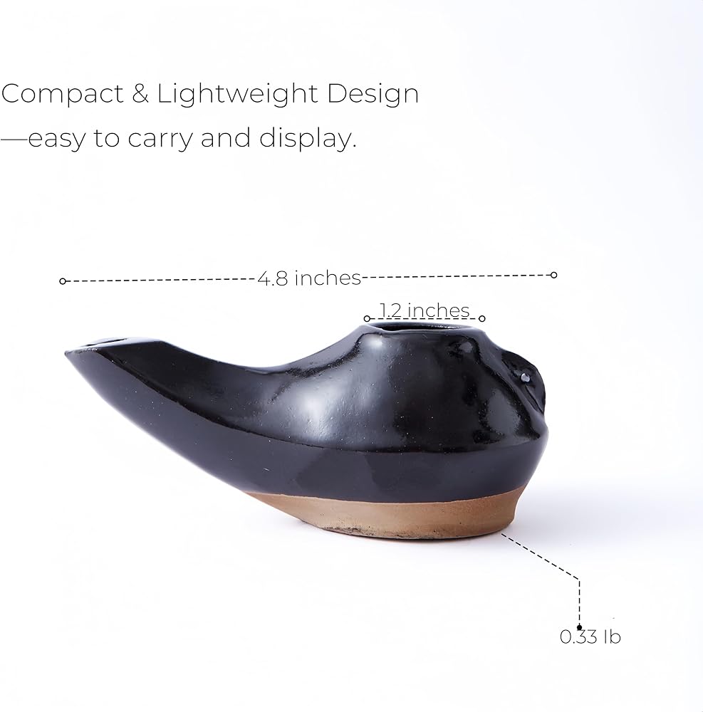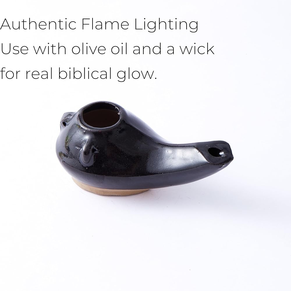 Product Description Bring the Light of History into Your Space This handcrafted oil lamp is modeled after designs from the Herodian era, reflecting the functional elegance of the ancient world. Made of kiln-fired clay with a glossy dark finish and simple, timeworn contours, it evokes the spirit of first-century daily life in the Middle East. Whether you use it for symbolic lighting during rituals, as a conversation piece in a classroom, or as a part of your cultural study collection, this lamp provides both meaning and presence. The open bowl is compatible with olive oil and a cotton wick (not included), offering a soft flame that gently flickers—ideal for slow reflection or ambient display. Its side holes allow for cord attachment, making it suitable for suspended presentation or secure tabletop use. Small yet striking, this historical replica finds its place in study rooms, museums, personal libraries, or as part of storytelling demonstrations. Who It's For: History enthusiasts and collectors Religious educators and storytellers Teachers and cultural presenters Anyone drawn to historical craftsmanship and ancient rituals Embrace the past—one flame at a time.