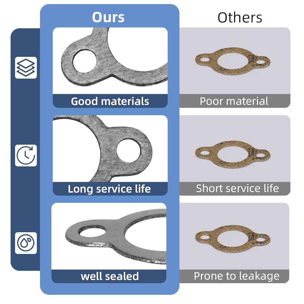 These gaskets are made of high-temperature resistant materials, which can ensure a stable seal and reliable performance in high-temperature environments. Their precise manufacturing design makes the installation simple and does not require any modifications. This set of four gaskets is highly suitable for maintenance and repair work. It is cost-effective and easy to use. Whether for professional repair personnel or DIY users, these gaskets can provide reliable operation support for your Kohler engine.