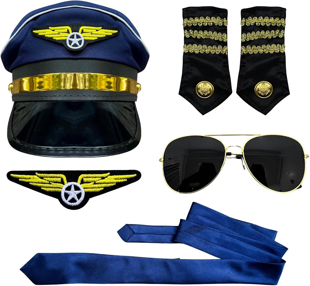 Take command of your costume with the EverJoy Party Pilot Costume Set, designed for a realistic airline captain look and suitable for both men and women. This complete set includes an adjustable navy pilot hat, clip-on tie, aviator sunglasses, epaulettes, and a fabric wing patch—everything you need to bring your aviator persona to life. Built for comfort and durability, the lightweight hat features a hook-and-loop closure for a secure fit, while the overall design ensures easy, extended wear. Perfect for Halloween, aviation-themed parties, cosplay, birthdays, or career day, this costume fits most adults aged 14 and up and can be spot cleaned to keep it looking sharp for every event. Like all EverJoy items, it's crafted with long-lasting quality in mind.