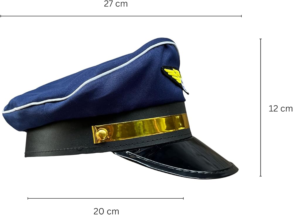 Designed for both comfort and durability, this pilot costume is made for extended wear. The lightweight airline captain's hat features an adjustable band with a hook-and-loop closure for a secure, comfortable fit.