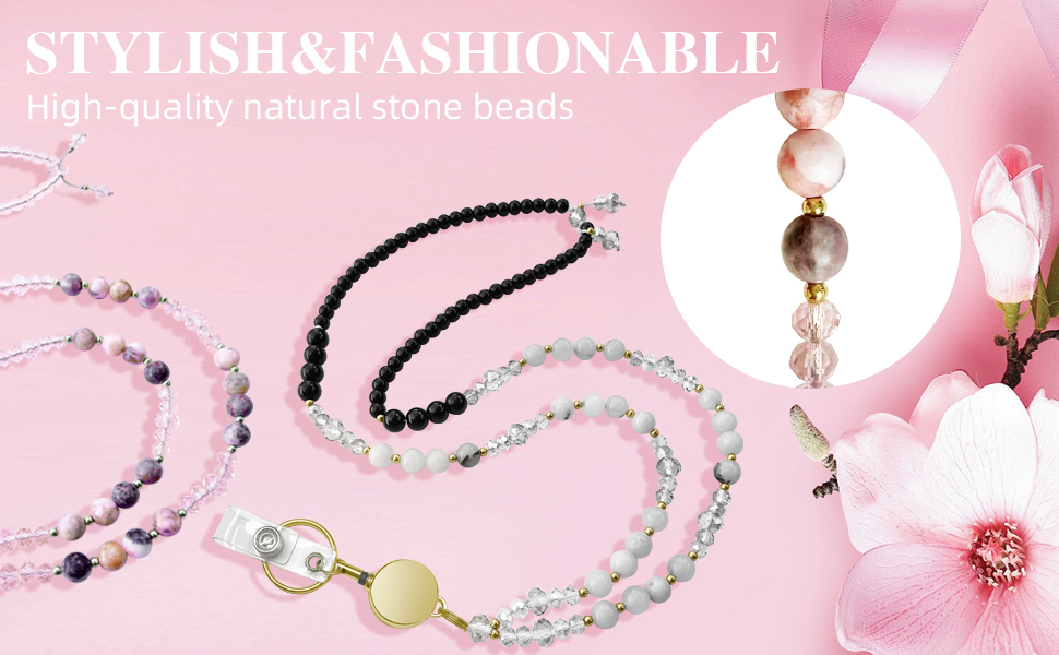 ♥ حبل مدرسي فاخر: الحبل المطرز مصنوع من أحجار طبيعية حقيقية مع كريستالات زجاجية من أجل الأناقة والسحر. كل خرزة مترابطة على ألياف خاصة بستة ضفائر مقاس 0.9 مم لمزيد من مقاومة التآكل. مثالية لأولئك الذين يبحثون عن إكسسوار جميل لشرائط الهوية والمفاتيح.
