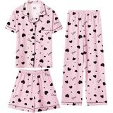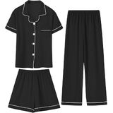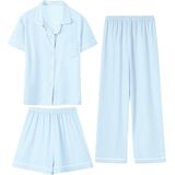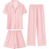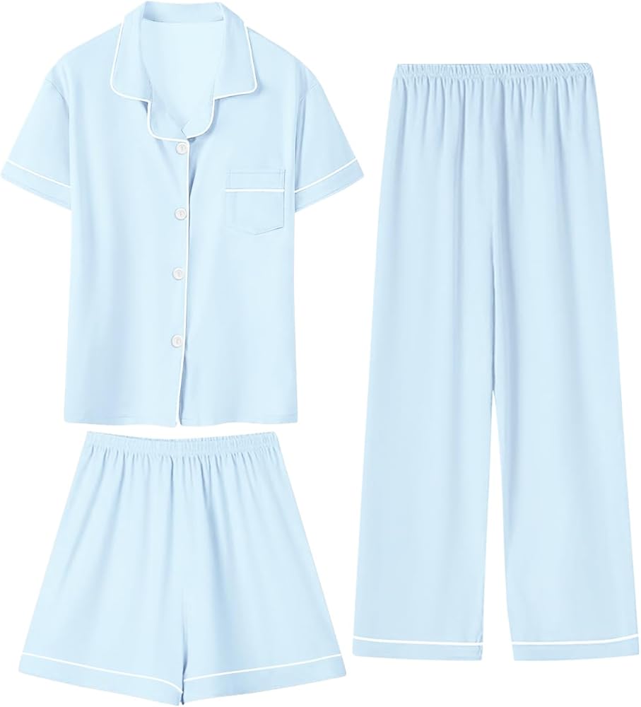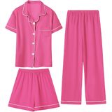 تصميم رائع: تتضمن مجموعة البيجامة الساحرة المكونة من ثلاث قطع قميصًا أنيقًا بأكمام قصيرة وسروالًا متناسقًا وزوجًا لطيفًا من السراويل القصيرة - مثالية كبيجامة للفتيات. متوفر بمجموعة متنوعة من الألوان المبهجة والمطبوعات المرحة