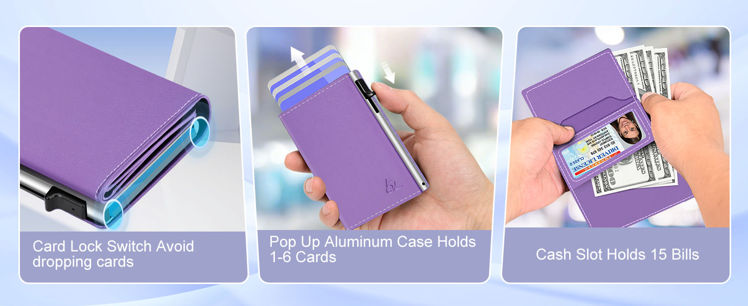 【تصميم جديد】تتميز هذه المحفظة النسائية بحافظة بطاقات منبثقة يمكنها استيعاب ما يصل إلى 6 بطاقات، ويمكن الوصول إلى البطاقة المطلوبة بسرعة بضغطة زر. مغناطيس داخلي في غطاء البولي يوريثان يسمح لك بإرفاق الغطاء والحجرة مغناطيسيًا.